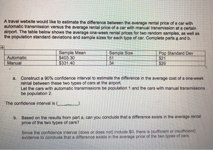 Solved A Travel Website Would Like To Estimate The Differ