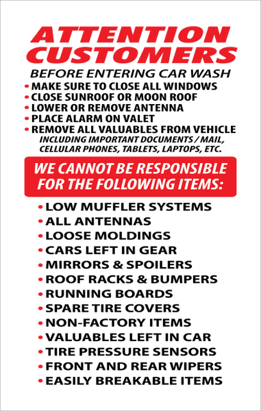 Car Wash Disclaimer Aluminum Windmaster Wall Sign Cheap
