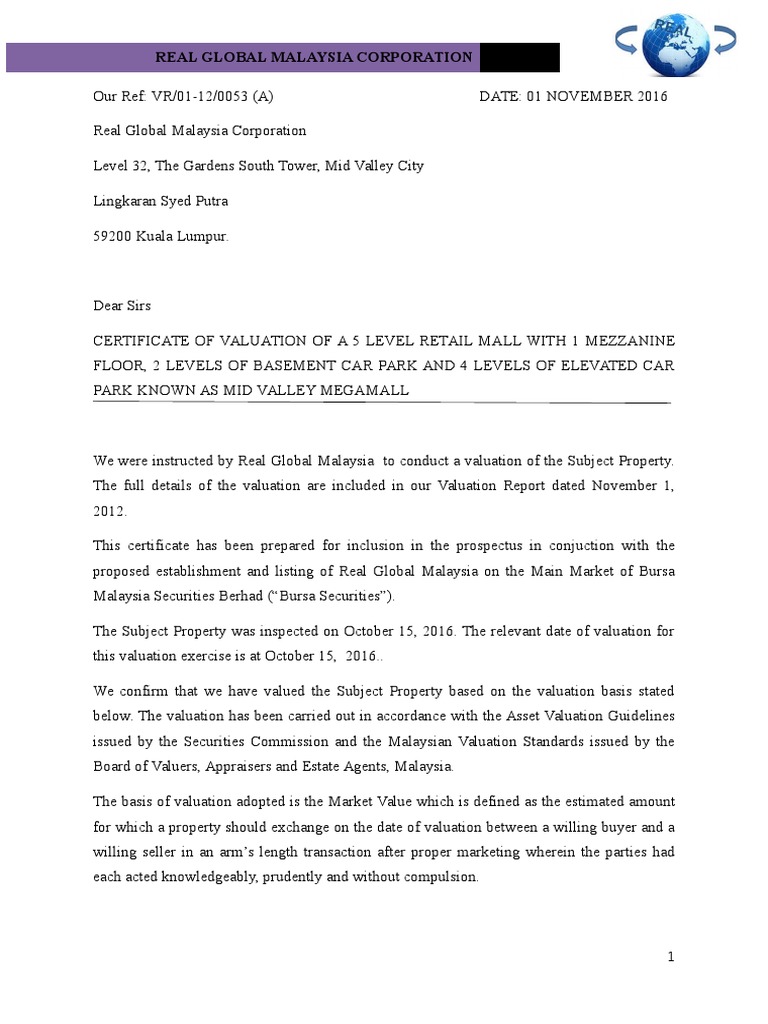 Valuation Report Sample Format Market Value Valuation Finance