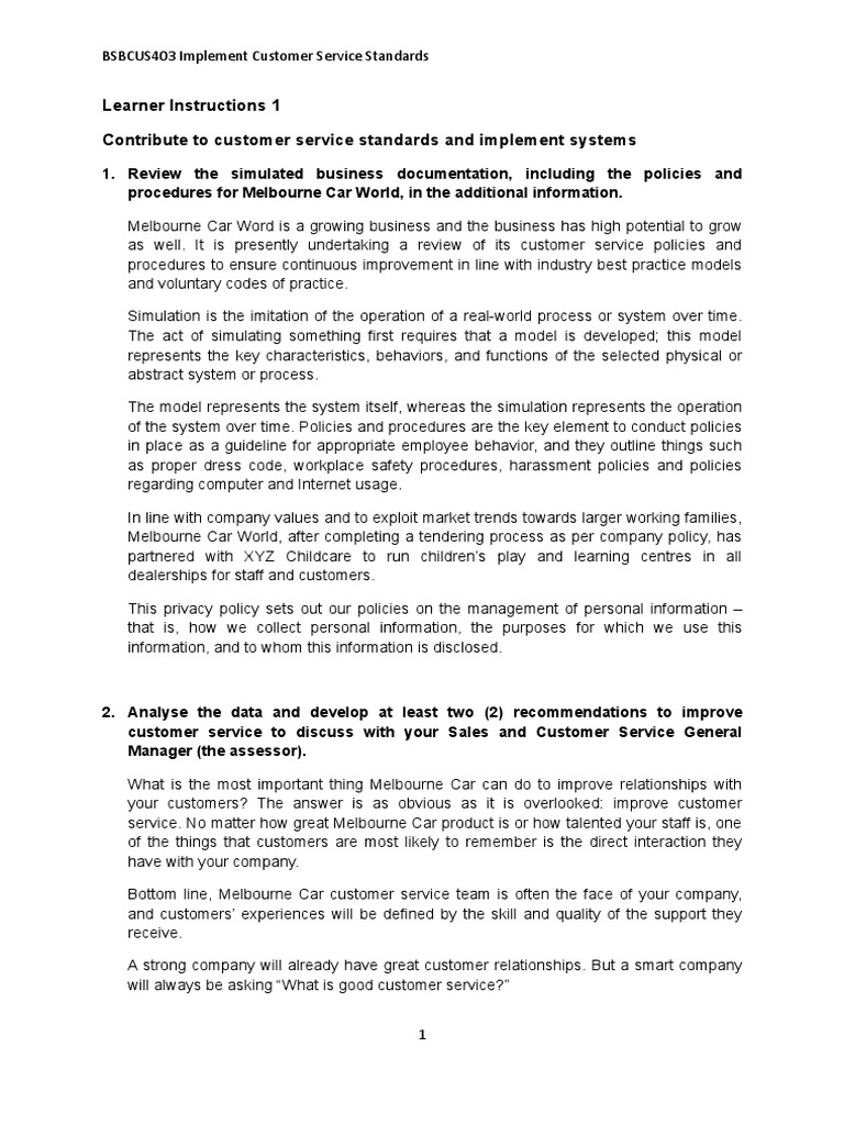 Bsbcus403 Implement Customer Service Standards Learner