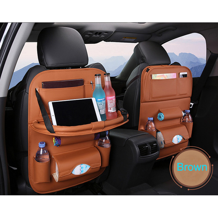 Auto Back Seat Storage Bag Folding Car Seat Organizer Leather