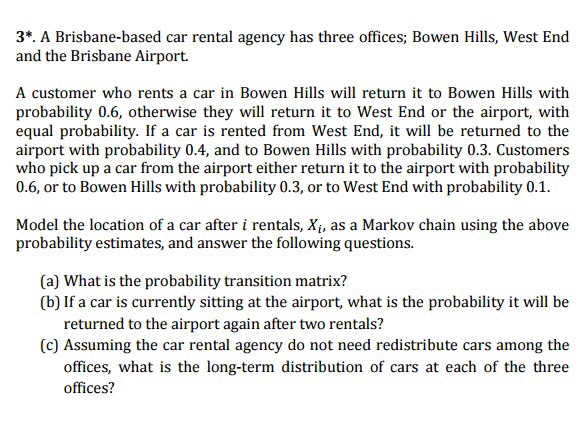 Solved A Brisbane Based Car Rental Agency Has Three Offic