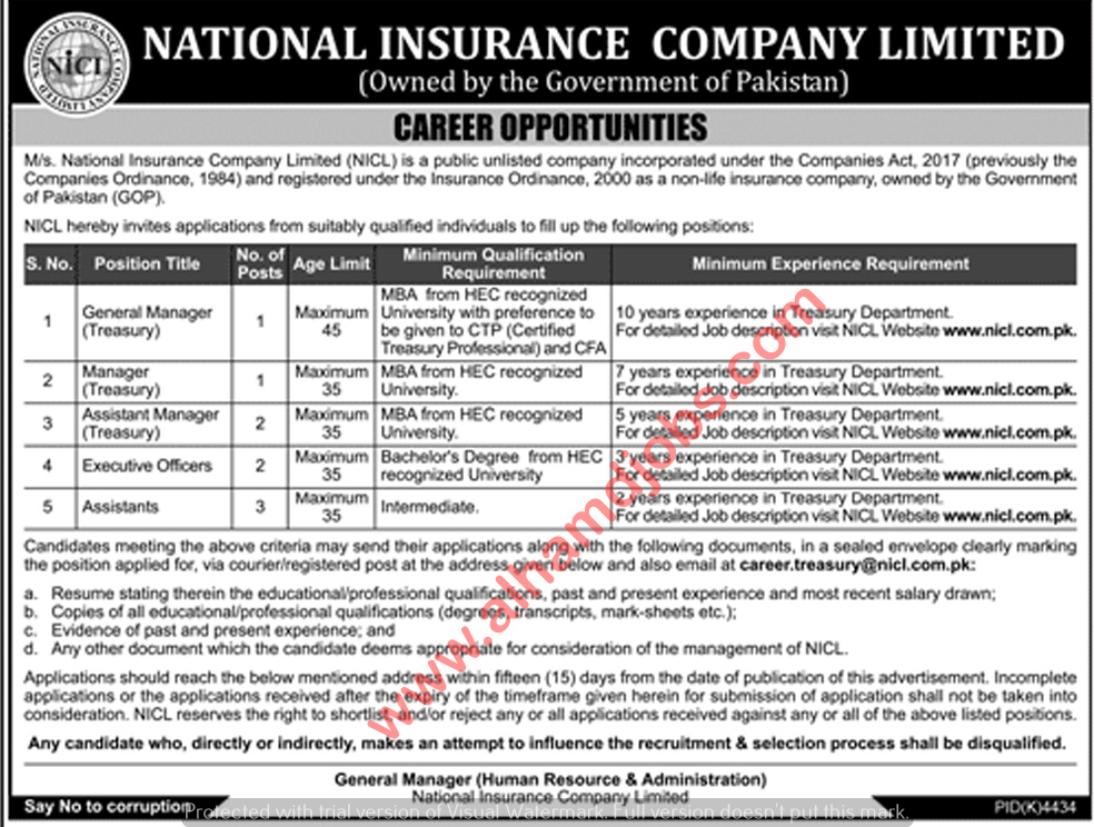 National Insurance Company Ltd Karachi Jobs For Chief Financial