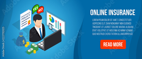 Online Insurance Concept Banner Isometric Banner Of Online