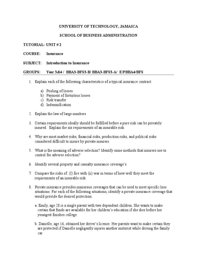 Insurance Tutorial 2 Students