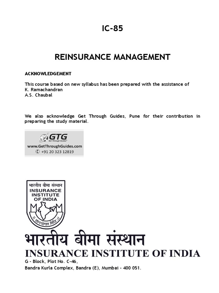 Ic 85 Reinsurance Pdf Reinsurance Insurance