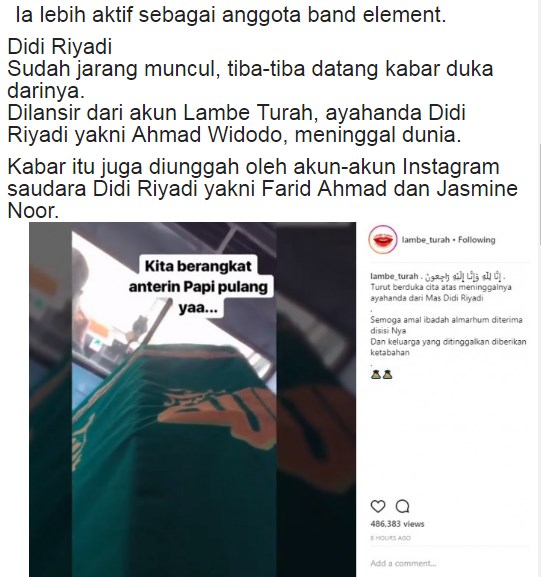 Kabar Duka Datang Dari Didi Riyadi Netizen Bersedih Life News 1