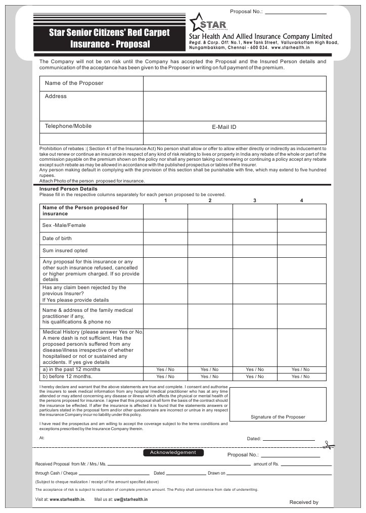 Star Senior Citizen Form Insurance Service Industries