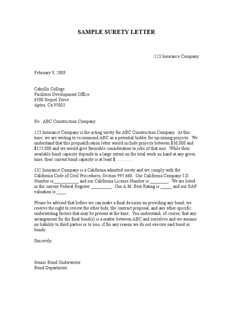 Surety Letter Template Bond Images Release
