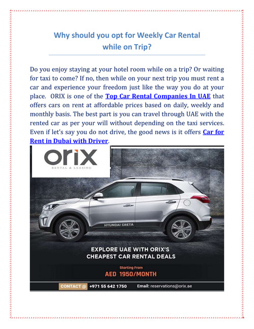 Weekly Car Rental Dubai